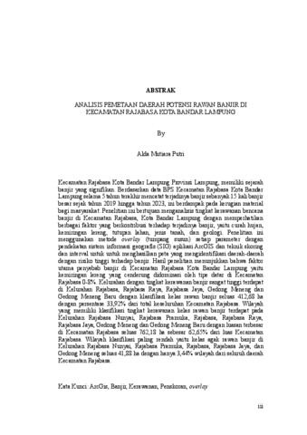 Alda , Mutiara Putri (2025) ANALISIS PEMETAAN DAERAH POTENSI RAWAN BANJIR DI KECAMATAN RAJABASA KOTA BANDAR LAMPUNG. FAKULTAS KEGURUAN DAN ILMU PENDIDIKAN, UNIVERSITAS LAMPUNG.