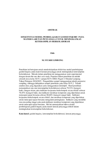 M. SYUKRI, LIMBONG (2025) EFEKTIVITAS MODEL PEMBELAJARAN GUIDED INQUIRY PADA MATERI LARUTAN PENYANGGA UNTUK MENINGKATKAN KETERAMPILAN BERKOLABORASI. FAKULTAS KEGURUAN DAN ILMU PENDIDIKAN, UNIVERSITAS LAMPUNG.