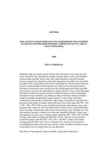 Indonesia salah satu negara agraris dengan sektor pertanian yang sangat luas dan subur, hal inilah yang memberikan dampak strategis dalam struktur pertumbuhan perekonomian nasional. Ketika suhu naik, mikroorganisme mesofilik menjadi kurang kompetitif dan digantikan oleh mikroorganisme termofilik. Fase termofilik merupakan fase yang penting dalam proses pengomposan. Hal ini karena pada fase tersebut terjadi peningkatan dekomposisi atau tahap awal pembentukan humus. Penelitian ini bertujuan untuk mengisolasi dan mengkarakterisasi fungi termofilik pada kompos dasar fase pre-dekomposisi compost plant PT. Great Giant Pineapple. Penelitian ini dilakukan dengan metode deskriptif eksploratif untuk mengetahui keberadaan fungi termofilik yang dilakukan dengan beberapa tahapan penelitian meliputi sampling (pengambilan sampel kompos), isolasi fungi, pemurnian, karakterisasi makroskopis, karakterisasi mikroskopis, karakterisasi enzimatik dan penentuan nilai indeks enzimatik. Diperoleh hasil enam isolat fungi (Bio PD 1, PD 2, PD 3, PD 4, PD 5, PD 6) yang memiliki karakteristik makroskopis warna yang beragam yaitu; putih, abu-abu dan merah jambu dengan tekstur yang mendominasi halus dan padat. Karakteristik mikroskopis keenam isolat yang memiliki ciri yaitu; hifa bersekat (bersepta), konidia kecil bulat dan memiliki konidiofor. Isolat yang menunjukkan aktivitas enzim selulase positif adalah Bio PD 3, PD 4, PD 5 dan PD 6 dengan nilai indeks tertinggi pada Bio PD 5 (0,90). Aktivitas enzim protease positif ditunjukkan oleh Bio PD 1, PD 2, PD 3, dan PD 5, dengan nilai indeks tertinggi pada Bio PD 2 dan 5 (0,14). Sementara itu, aktivitas enzim ligninase mengindikasikan bahwa keenam isolat tersebut, tidak memiliki kemampuan untuk menguraikan senyawa lignin pada uji yang dilakukan. Kata Kunci: Pengomposan, Fungi termofilik, Isolasi dan Karakterisasi Indonesia is one of the world's leading agrarian countries, boasting a vast and fertile agricultural sector. This significantly impacts the structure of the national economy. As the temperature rises, mesophilic microorganisms become less competitive and are replaced by thermophilic ones. The thermophilic phase is an important stage in composting. In this phase, there is an increase in decomposition or the initial formation of humus. This study aims to isolate and characterize thermophilic fungi in the compost base during the pre-decomposition phase at PT. Great Giant Pineapple. This descriptive exploratory study determined the presence of thermophilic fungi through several stages: sampling the compost, fungal isolation, purification, macroscopic and microscopic characterization, enzymatic characterization, and determination of the enzymatic index value. Six isolates (Bio PD 1, PD 2, PD 3, PD 4, PD 5, and PD 6) with various colors, including white, gray, and pink, and a predominantly smooth and dense texture were isolated. The six isolates have the following microscopic characteristics: septate hyphae, small round conidia, and conidiofores. The isolates that showed positive activity for the cellulase enzyme were Bio PD 3, PD 4, PD 5, and PD 6, with Bio PD 5 showing the highest index value (0.90). Bio PD 1, PD 2, PD 3, and PD 5 showed protease enzyme activity, with the highest value for the index on Bio PD 2 and 5 (0.14). Meanwhile, ligninase enzyme activity indicated that the six isolates did not have the ability to break down lignin compounds in the test conducted. Keywords: Composting, Thermophilic fungi, Isolation and Characterization