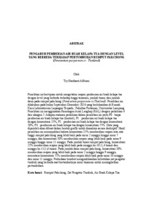 Penelitian ini bertujuan untuk mengetahui respon pemberian air buah kelapa tua dengan level yang berbeda terhadap tinggi tanaman, jumlah tunas, dan jumlah daun pada rumput pakchong (Pennisetum purpureum cv.Thailand). Penelitian ini dilakukan pada bulan September-Desember 2024 yang berlokasikan di Rumah Kaca Laboratorium Lapangan Terpadu , Fakultas Pertanian, Universitas Lampung. Penelitian ini menggunakan Rancangan Acak Lengkap (RAL) dengan perlakuan 4 dan ulangan 5. Adapun susunan perlakuan dalam penelitian ini yaitu P0 : tanpa pemberian air buah kelapa tua (kontrol), P1 : pemberian air buah kelapa tua dengan konsentrasi 25%, P2 : pemberian air buah kelapa tua dengan konsentrasi 50%, P3 : pemberian air buah kelapa tua dengan konsentrasi 75%. Data yang diperoleh akan dibuat dalam bentuk grafik untuk dianalisis secara deskriptif. Hasil penelitian ini menunjukkan bahwa konsentrasi 25% memberikan respon rata-rata tinggi rumput pakchong yang lebih baik pada umur 2 minggu hingga umur 7 minggu, dan konsentrasi 50% memberikan respon yang lebih baik pada umur 9 minggu hingga umur 11 minggu. Pada jumlah tunas rumput pakchong, konsentrasi 25% memberikan respon yang lebih baik pada minggu ke-10 (1,4 tunas) dan minggu ke-11(1,6 tunas). Pada jumlah daun rumput pakchong, konsentrasi 50% memberikan respon yang lebih baik pada umur 2 minggu hingga 9 minggu, sementara konsentrasi 75% memberikan respon lebih baik pada umur 10 minggu dan umur 11 minggu. Perbedaan tersebut mengindikasikan kebutuhan zat pengatur tumbuh yang berbeda saat bertambahnya umur tanaman untuk meningkatkan pertumbuhan. Kata kunci : Rumput Pakchong, Zat Pengatur Tumbuh, Air Buah Kelapa Tua This study aims to determine the response of water administration of old coconuts with different levels to the plant high, number of shoots, and number of leaves on pakchong grass (Pennisetum purpureum cv.Thailand). This research was conducted in September-December 2024 which is located in the Greenhouse of the Integrated Field Laboratory, Faculty of Agriculture, University of Lampung. This study used a Complete Random Design (RAL) with treatment 4 and 5 replicates. The treatment structure in this study is P0: without giving old coconut fruit water (control), P1: giving old coconut fruit water with a concentration of 25%, P2: giving old coconut water with a concentration of 50%, P3: giving old coconut fruit water with a concentration of 75%. The data obtained will be made in the form of graphs to be analyzed descriptively. The results of this study showed that the 25% concentration gave a better average response to pakchong grass at the age of 2 weeks to 7 weeks, and the concentration of 50% gave a better response at the age of 9 weeks to 11 weeks. In the number of pakchong grass shoots, a concentration of 25% gave a better response in week 10 (1.4 shoots) and week 11 (1.6 shoots). In the number of pakchong grass leaves, the concentration of 50% gave a better response at the age of 2 weeks to 9 weeks, while the concentration of 75% gave a better response at the age of 10 weeks and 11 weeks of age. These differences indicate the need for different growth regulators as the plant grows older to promote growth. Keywords : Pakchong Grass, Growth Regulator, Old Coconut Fruit Water