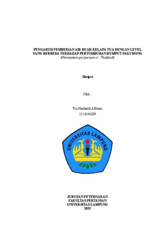 Try , Hardianti Alfriani (2025) PENGARUH PEMBERIAN AIR BUAH KELAPA TUA DENGAN LEVEL YANG BERBEDA TERHADAP PERTUMBUHAN RUMPUT PAKCHONG (Pennisetum purpureum cv. Thailand). FAKULTAS PERTANIAN, UNIVERISTAS LAMPUNG.