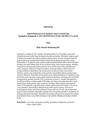 Holy , Martin Rubintang HT (2025) IDENTIFIKASI DAN KERAGAMAN GENETIK Spodoptera frugiperda YANG DITEMUKAN PADA RUMPUT GAJAH. FAKULTAS PERTANIAN, UNIVERSITAS LAMPUNG.