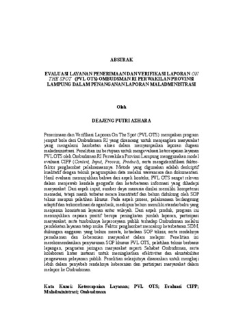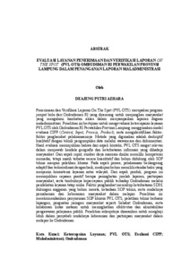 Deajeng , Putri Azhara (2025) EVALUASI LAYANAN PENERIMAAN DAN VERIFIKASI LAPORAN ON THE SPOT (PVL OTS) OMBUDSMAN RI PERWAKILAN PROVINSI LAMPUNG DALAM PENANGANAN LAPORAN MALADMINISTRASI. FAKULTAS ILMU SOSIAL DAN ILMU POLITIK, UNIVERSITAS LAMPUNG.