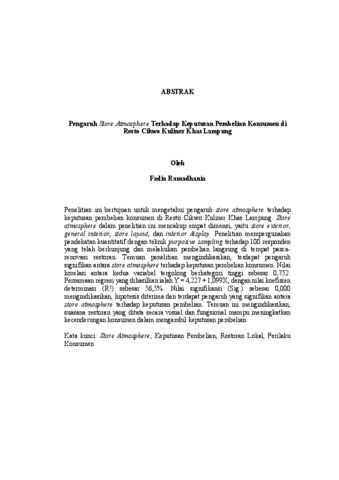 Fadia, Ramadhania (2025) Pengaruh Store Atmosphere Terhadap Keputusan Pembelian Konsumen di Resto Cikwo Kuliner Khas Lampung. FAKULTAS ILMU SOSIAL DAN ILMU POLITIK, UNIVERSITAS LAMPUNG.
