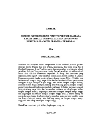 Nadia , Rafikasari (2025) ANALISIS FAKTOR MOTIVASI PENENTU PRESTASI OLAHRAGA KARATE DITINJAU DARI POLA LATIHAN, LINGKUNGAN DAN PERAN ORANG TUA DI GOJUKAI PESAWARAN. FAKULTAS KEGURUAN DAN ILMU PENDIDIKAN , UNIVERSITAS LAMPUNG.