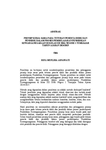 Rifa , Mufliha Asnawati (2025) PRINSIP KERJA SAMA PADA TUTURAN PESERTA DIDIK DAN PENDIDIK DALAM PROSES PEMBELAJARAN PENDIDIKAN KEWARGANEGARAAN DI KELAS XII SMA NEGERI 1 TUMIJAJAR TAHUN AJARAN 2024/2025. FAKULTAS KEGURUAN DAN ILMU PENDIDIKAN , UNIVERSITAS LAMPUNG.