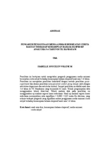 Isabelle , Joycelyn Volene M (2025) PENGARUH PENGGUNAAN MEDIA ANIMASI BERMUATAN CERITA RAKYAT TERHADAP KEMAMPUAN BAHASA EKSPRESIF ANAK USIA 5-6 TAHUN DI TK HANDAYANI. FAKULTAS KEGURUAN DAN ILMU PENDIDIKAN, UNIVERSITAS LAMPUNG.