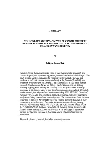 Rafiqah, Amany Rele (2025) ANALISIS KELAYAKAN FINANSIAL UDANG VANAME DI DESA BRATASENA ADIWARNA KECAMATAN DENTE TELADAS KABUPATEN TULANG BAWANG. FAKULTAS PERTANIAN, UNIVERSITAS LAMPUNG .