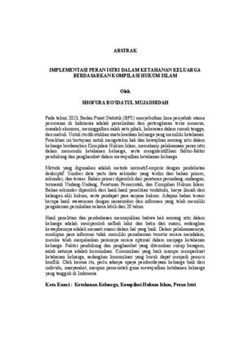 Shofura , Ro'idatul Mujaddidah (2025) IMPLEMENTASI PERAN ISTRI DALAM KETAHANAN KELUARGA BERDASARKAN KOMPILASI HUKUM ISLAM. FAKULTAS HUKUM, UNIVERSITAS LAMPUNG.