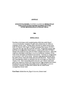 Penelitian ini bertujuan untuk mendeskripsikan efektivitas model flipped classroom berbantuan visualisasi 3D pada materi alkohol dan eter untuk me- ningkatkan literasi visual. Populasi dalam penelitian ini adalah seluruh siswa kelas XII Minat di SMA Negeri 10 Bandar Lampung Tahun Ajaran 2024/2025 yang terdiri dari tiga kelas dan berjumlah 108 siswa. Pengambilan sampel pada penelitian ini menggunakan teknik purposive sampling yaitu kelas XII Minat 1 sebagai kelas eksperimen dan kelas XII Minat 3 sebagai kelas kontrol. Pada kelas eksperimen diterapkan model flipped classroom berbantuan visualisasi 3D dan kelas kontrol diterapkan pembelajaran konvensional. Penelitian ini menggunakan pretest-posttest control group design. Instrumen yang digunakan berupa pretes dan postes literasi visual serta lembar observasi aktivitas siswa. Teknik analisis data yang digunakan adalah uji perbedaan dua rata-rata dengan uji Independent Samples t-test. Hasil menunjukan bahwa rata-rata n-gain literasi visual siswa pada kelas eksperimen sebesar 0,80 yang berkriteria tinggi daripada kelas kontrol. Berdasarkan hal tersebut dapat disimpulkan bahwa model flipped classroom berbantuan visualisasi 3D pada materi alkohol dan eter efektif untuk meningkatkan literasi visual. Kata Kunci: alkohol dan eter, flipped classroom, literasi visual This study aimed to describe the effectiveness of the flipped classroom model assisted by 3D visualization in alcohol and ether topic to improve visual literacy. The population was all Grade XII students at SMA Negeri 10 Bandar Lampung in the 2024/2025 academic year, consisting of three classes and a total of 108 students. The sampling technique used in this study was purposive sampling, with Grade XII Minat 1 as the experimental class and Grade XII Minat 3 as the control class. The flipped classroom model assisted by 3D visualization was applied in the experimental class, while conventional learning was applied in the control class. This study used a pretest-posttest control group design. The instruments used were pretest and posttest visual literacy tests and student activities observation sheets. The data analysis technique used was the Independent Samples t-test to test the difference between two means. The results show that the average n-gain in visual literacy among students in the experimental class was 0.80, which is higher than that of the control class. Based on this, it can be concluded that the flipped classroom model assisted by 3D visualization in alcohol and ether material is effective in improving visual literacy. Keywords: alcohol and ether, flipped classroom, visual literacy