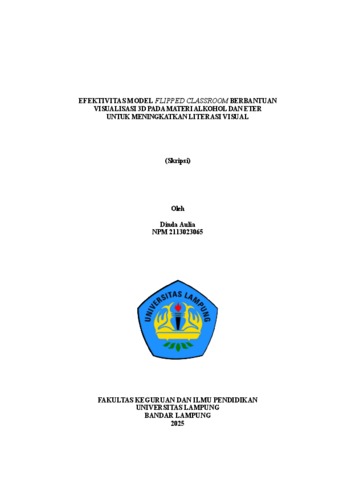 Dinda, Aulia (2025) EFEKTIVITAS MODEL FLIPPED CLASSROOM BERBANTUAN VISUALISASI 3D PADA MATERI ALKOHOL DAN ETER UNTUK MENINGKATKAN LITERASI VISUAL. FAKULTAS KEGURUAN DAN ILMU PENDIDIKAN, UNIVERSITAS LAMPUNG.