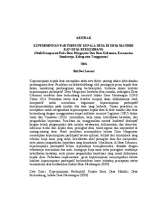 Siti , Dwi Lestari (2025) KEPEMIMPINAN PARTISIPATIF KEPALA DESA DI DESA MANDIRI DAN DESA BERKEMBANG (Studi Komparasi Pada Desa Margoyoso Dan Desa Kebumen, Kecamatan Sumberejo, Kabupaten Tanggamus). FAKULTAS ILMU SOSIAL DAN ILMU POLITIK, UNIVERSITAS LAMPUNG.