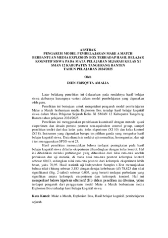Dien , Frisqyta Amalia (2025) PENGARUH MODEL PEMBELAJARAN MAKE A MATCH BERBANTUAN MEDIA EXPLOSION BOX TERHADAP HASIL BELAJAR KOGNITIF SISWA PADA MATA PELAJARAN SEJARAH KELAS XI SMAN 12 KABUPATEN TANGERANG BANTEN TAHUN PELAJARAN 2024/2025. FAKULTAS KEGURUAN DAN ILMU PENDIDIKAN, UNIVERSITAS LAMPUNG.
