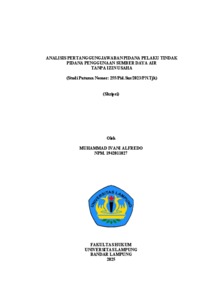 MUHAMMAD , IVANI ALFREDO (2025) ANALISIS PERTANGGUNGJAWABAN PIDANA PELAKU TINDAK PIDANA PENGGUNAAN SUMBER DAYA AIR TANPA IZIN USAHA (Studi Putusan Nomor: 255/Pid.Sus/2023/PN.Tjk). FAKULTAS HUKUM, UNIVERSITAS LAMPUNG.