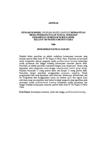 MUHAMMAD , FAITH AL FARABY (2025) PENGARUH MODEL PROBLEM-BASED LEARNING BERBANTUAN MEDIA PERMAINAN ULAR TANGGA TERHADAP KEMAMPUAN NUMERASI PESERTA DIDIK KELAS IV SD NEGERI 6 METRO UTARA. FAKULTAS KEGURUAN DAN ILMU PENDIDIKAN , UNIVERSITAS LAMPUNG.