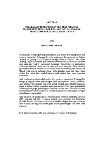 Danda , Meri Aprisa (2025) GAYA BAHASO PERBANDINGAN LEM TEKS PEPACCUR MASYARAKAT TERBANGGI ILIR JAMO IMPLIKASINO DAK PEMBELAJARAN BAHASO LAMPUNG DI SMA. FAKULTAS KEGURUAN DAN ILMU PENDIDIKAN , UNIVERSITAS LAMPUNG.
