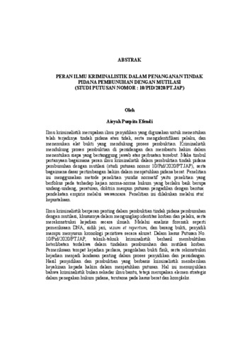 PERAN ILMU KRIMINALISTIK DALAM PENANGANAN TINDAK PIDANA PEMBUNUHAN DENGAN MUTILASI (Studi Putusan Nomor : 10/Pid/2020/PT.JAP)
