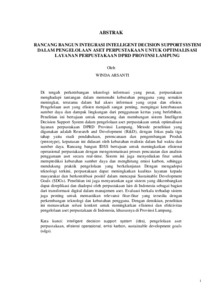 Di tengah perkembangan teknologi informasi yang pesat, perpustakaan menghadapi tantangan dalam memenuhi kebutuhan pengguna yang semakin meningkat, terutama dalam hal akses informasi yang cepat dan efisien. Pengelolaan aset yang efisien menjadi sangat penting, mengingat keterbatasan sumber daya dan dampak lingkungan dari penggunaan kertas yang berlebihan. Penelitian ini bertujuan untuk merancang dan membangun sistem Intelligent Decision Support System dalam pengelolaan aset perpustakaan untuk optimalisasi layanan perpustakaan DPRD Provinsi Lampung. Metode penelitian yang digunakan adalah Research and Development (R&D), dengan fokus pada tiga tahap yaitu studi pendahuluan, perencanaan dan pengembangan Produk (prototype), keputusan ini didasari oleh kebutuhan realistis dalam hal waktu dan sumber daya. Rancang bangun IDSS bertujuan untuk meningkatkan efisiensi operasional perpustakaan dengan mengotomatisasi proses pencatatan dan analisis penggunaan aset secara real-time. Sistem ini juga menyediakan fitur untuk memprediksi kebutuhan sumber daya dan menghitung emisi karbon, sehingga mendukung praktik pengelolaan yang berkelanjutan Dengan mengadopsi teknologi terkini, perpustakaan dapat meningkatkan kualitas layanan kepada masyarakat dan berkontribusi positif dalam mencapai Sustainable Development Goals (SDGs). Penelitian ini juga menyarankan agar sistem yang dikembangkan dapat direplikasi dan diadopsi oleh perpustakaan lain di Indonesia sebagai bagian dari transformasi digital dalam manajemen aset. Evaluasi berkala terhadap sistem juga penting untuk memastikan relevansi fitur-fitur yang tersedia dengan perkembangan teknologi dan kebutuhan pengguna. Dengan demikian, penelitian ini menawarkan solusi konkret untuk meningkatkan efisiensi dan efektivitas pengelolaan aset perpustakaan di Indonesia, khususnya di Provinsi Lampung. Kata kunci: intelligent decision support system (idss), pengelolaan aset perpustakaan, efisiensi operasional, emisi karbon, sustainable development goals(sdgs). In the midst of the rapid development of information technology, libraries face challenges in meeting the increasing needs of users, especially in terms of fast and efficient access to information. Efficient asset management becomes very important, given the limited resources and environmental impact of excessive paper usage. This research aims to design and build an Intelligent Decision Support System in library asset management to optimize the library services of the Lampung Provincial Parliament. The research method used is Research and Development (R&D), focusing on three stages namely preliminary studies, planning and product development (prototype), this decision is based on realistic needs in terms of time and resources. The IDSS design aims to improve the efficiency of library operations by automating the process of recording and analyzing asset usage in real-time. The system also provides features to predict resource requirements and calculate carbon emissions, thus supporting sustainable management practices By adopting the latest technology, libraries can improve the quality of services to the community and contribute positively to achieving the Sustainable Development Goals (SDGs). This research also suggests that the developed system can be replicated and adopted by other libraries in Indonesia as part of digital transformation in asset management. Periodic evaluation of the system is also important to ensure the relevance of available features with technological developments and user needs. Thus, this research offers a concrete solution to improve the efficiency and effectiveness of library asset management in Indonesia, especially in Lampung Province. Keywords: intelligent decision support system (idss), library asset management, operational efficiency, carbon emissions, sustainable development goals (sdgs).