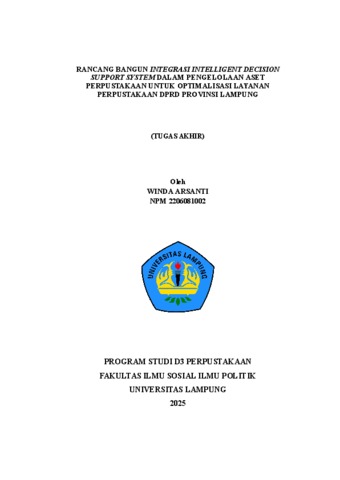 Winda Arsanti, - (2025) RANCANG BANGUN INTEGRASI INTELLIGENT DECISION SUPPORT SYSTEM DALAM PENGELOLAAN ASET PERPUSTAKAAN UNTUK OPTIMALISASI LAYANAN PERPUSTAKAAN DPRD PROVINSI LAMPUNG. [Diploma/Tugas Akhir]
