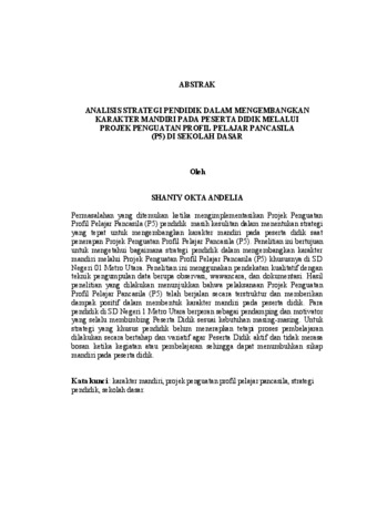 Shanty , Okta Andelia (2025) ANALISIS STRATEGI PENDIDIK DALAM MENGEMBANGKAN KARAKTER MANDIRI PADA PESERTA DIDIK MELALUI PROJEK PENGUATAN PROFIL PELAJAR PANCASILA (P5) DI SEKOLAH DASAR. FAKULTAS KEGURUAN DAN ILMU PENDIDIKAN, UNIVERSITAS LAMPUNG .