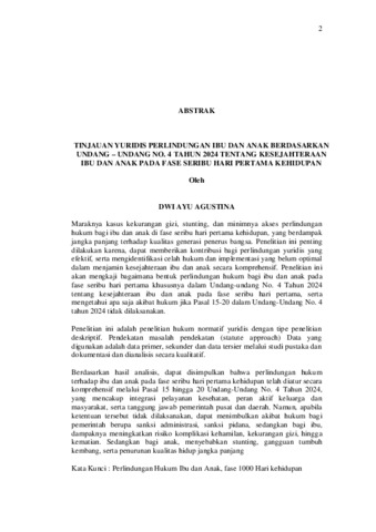Dwi , Ayu Agustina (2025) TINJAUAN YURIDIS PERLINDUNGAN IBU DAN ANAK BERDASARKAN UNDANG – UNDANG NO. 4 TAHUN 2024 TENTANG KESEJAHTERAAN IBU DAN ANAK PADA FASE SERIBU HARI PERTAMA KEHIDUPAN. FAKULTAS HUKUM, UNIVERSITAS LAMPUNG .