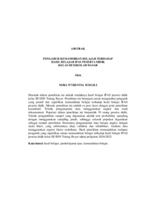 Masalah penelitian ini adalah rendahnya hasil belajar IPAS peserta didik kelas III SDN Tulung Buyut. Penelitian ini bertujuan untuk mengetahui pengaruh yang positif dan signifikan kemandirian belajar terhadap hasil belajar IPAS peserta didik. Metode penelitian ini adalah ex post facto dengan jenis penelitian kuantitatif. Teknik pengumpulan data menggunakan angket dan studi dokumentasi. Populasi dalam penelitian ini berjumlah 39 orang peserta didik. Teknik pengambilan sampel yang digunakan adalah non probability sampling dengan menggunakan sampling jenuh, sehingga seluruh populasi digunakan sebagai sampel penelitian. Instrumen pengumpulan data berupa angket dengan skala likert, yang sebelumnya diuji validitas dan reliabilitas. Analisis data menggunakan regresi linear sederhana. Hasil penelitian menunjukkan terdapat pengaruh yang signifikan antara kemandirian belajar terhadap hasil belajar IPAS peserta didik kelas III SDN Tulung Buyut tahun pelajaran 2024/2025. Kata kunci: hasil belajar, pembelajaran ipas, kemandirian belajar. The problem of this research is the low learning outcomes of IPAS (Integrated Social and Natural Sciences) for third-grade students at SDN Tulung Buyut. This study aims to determine the positive and significant effect of self managed learningon IPAS learning outcomes. The research method used is ex post facto with a quantitative research design. Data collection techniques involve questionnaires and documentation studies. The population in this study consists of 39 students. The sampling technique used is non-probability sampling with saturated sampling, where the entire population is used as the research sample. The data collection instrument is a questionnaire with a Likert scale, which was tested for validity and reliability. Data analysis was conducted using simple linear regression. The results of the study indicate that there is a significant effect of self managed learningon IPAS learning outcomes for the students of SDN Tulung Buyut in the 2024/2025 academic year. Keywords: learning outcomes, IPAS learning, Self-Managed learning.
