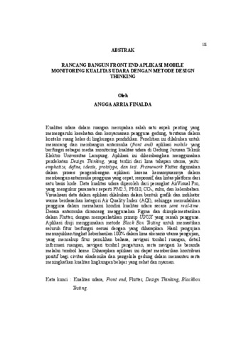 ANGGA , ARRIA FINALDA (2025) RANCANG BANGUN FRONT END APLIKASI MOBILE MONITORING KUALITAS UDARA DENGAN METODE DESIGN THINKING. FAKULTAS TEKNIK, UNIVERSITAS LAMPUNG.
