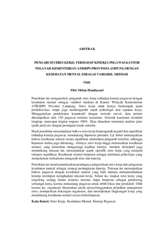 Penelitian ini menganalisis pengaruh stres kerja terhadap kinerja pegawai dengan kesehatan mental sebagai variabel mediasi di Kantor Wilayah Kementerian ATR/BPN Provinsi Lampung. Stres kerja tidak hanya berdampak pada produktivitas, tetapi juga memengaruhi aspek psikologis dan capaian kerja. Menggunakan pendekatan kuantitatif dengan metode survei, data primer dikumpulkan dari 150 pegawai melalui kuesioner. Seluruh kuesioner kembali lengkap, mencapai tingkat respons 100%. Data dianalisis memakai analisis jalur (path analysis) dengan perangkat lunak statistik. Hasil penelitian menunjukkan bahwa stres kerja berpengaruh negatif dan signifikan terhadap kinerja pegawai, mendukung hipotesis pertama. Uji Sobel menunjukkan bahwa kesehatan mental secara signifikan memediasi pengaruh tersebut, sehingga hipotesis kedua juga didukung.. Artinya, stres kerja tinggi menurunkan kesehatan mental, yang kemudian mengurangi kualitas kinerja. Analisis deskriptif juga mendukung temuan ini, menunjukkan aspek spesifik stres kerja yang menjadi tekanan signifikan. Kesehatan mental berperan sebagai jembatan psikologis yang menjelaskan mekanisme pengaruh stres dan kinerja. Penelitian ini merekomendasikan pentingnya pengelolaan stres kerja dan penguatan kesehatan mental sebagai strategi peningkatan kinerja. Temuan ini menunjukkan bahwa pegawai dengan kesehatan mental yang baik mampu mempertahankan kinerja meskipun menghadapi tekanan kerja. Selain itu, tingkat stres kerja yang tergolong sedang dalam konteks tertentu dapat berperan sebagai pendorong semangat kerja, karena menantang pegawai untuk lebih fokus dan produktif. Oleh karena itu, organisasi disarankan untuk menyelenggarakan pelatihan manajemen stres, memperkuat dukungan organisasi, dan menciptakan lingkungan kerja yang mendukung kesehatan mental secara berkelanjutan. Kata Kunci: Stres Kerja, Kesehatan Mental, Kinerja Pegawai. This study analyzes the influence of work stress on employee performance with mental health as a mediating variable at the Regional Office of the Ministry of Agrarian Affairs and Spatial Planning/National Land Agency of Lampung Province. Work stress not only impacts productivity but also psychological aspects and work achievements. A quantitative approach using a survey method was employed. Primary data were collected from 150 employees via questionnaires, all of which were returned complete (100% response rate). Data were analyzed using path analysis. The results indicate that job stress has a negative and significant effect on employee performance, supporting the first hypothesis. The Sobel test confirms that mental health significantly mediates this effect, thus supporting the second hypothesis. In other words, high job stress reduces mental health, which in turn lowers performance quality. Descriptive analysis also supports these findings, highlighting specific aspects of job stress as significant sources of pressure. Mental health acts as a psychological bridge explaining the mechanism between stress and performance. This study recommends managing work stress and strengthening mental health as strategic efforts to improve performance. The findings indicate that work stress has a negative effect on performance, while mental health has a direct positive effect and also significantly mediates the relationship between stress and performance. Employees with good mental health tend to remain productive even under pressure. Moreover, a moderate level of work stress can serve as a trigger for enthusiasm and focus at work. Therefore, organizations need to provide stress management training and foster a work environment that continuously supports mental well-being. Keywords: Work Stress, Mental Health, Employee Performance.