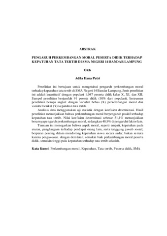 Adila , Hana Putri (2025) PENGARUH PERKEMBANGAN MORAL PESERTA DIDIK TERHADAP KEPATUHAN TATA TERTIB DI SMA NEGERI 14 BANDAR LAMPUNG. FAKULTAS KEGURUAN DAN ILMU PENDIDIKAN, UNIVERSITAS LAMPUNG.