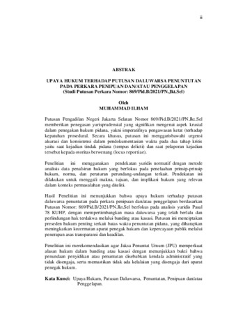 MUHAMMAD ILHAM , - (2025) UPAYA HUKUM TERHADAP PUTUSAN DALUWARSA PENUNTUTAN PADA PERKARA PENIPUAN DAN/ATAU PENGGELAPAN (Studi Putusan Perkara Nomor: 869/Pid.B/2021/PN.Jkt.Sel). Masters thesis, UNIVERSITAS LAMPUNG .