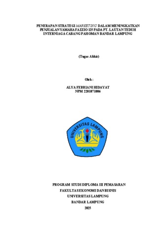 Alya , Febriani Hidayat (2025) PENERAPAN STRATEGI MARKETING DALAM MENINGKATKAN PENJUALAN YAMAHA FAZZIO 125 PADA PT. LAUTAN TEDUH INTERNIAGA CABANG PAHOMAN BANDAR LAMPUNG. [Diploma/Tugas Akhir]