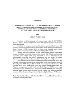 MEILIN , PUSPITA SARI (2025) PERBANDINGAN HASIL BELAJAR IPS TERPADU MENGGUNAKAN MODEL PEMBELAJARAN NUMBERED HEAD TOGETHER (NHT) DAN MAKE A MATCH DENGAN MEMPERHATIKAN MINAT BELAJAR SISWA SMP PGRI 6 BANDAR LAMPUNG. FAKULTAS KEGURUAN DAN ILMU PENDIDIKAN, UNIVERSITAS LAMPUNG.