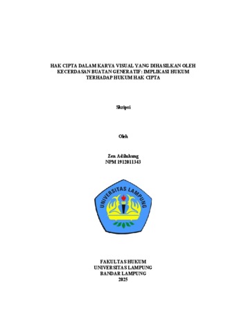 Zen Adiluhung, - (2025) HAK CIPTA DALAM KARYA VISUAL YANG DIHASILKAN OLEH KECERDASAN BUATAN GENERATIF: IMPLIKASI HUKUM TERHADAP HUKUM HAK CIPTA. FAKULTAS HUKUM, UNIVERSITAS LAMPUNG.