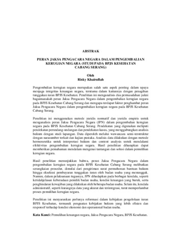 Risky Khairullah, - (2025) PERAN JAKSA PENGACARA NEGARA DALAM PENGEMBALIAN KERUGIAN NEGARA (STUDI PADA BPJS KESEHATAN CABANG SERANG). Masters thesis, UNIVERSITAS LAMPUNG.