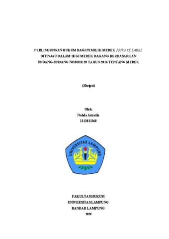 NAHDA , ASTRELLA (2025) PERLINDUNGAN HUKUM BAGI PEMILIK MEREK PRIVATE LABEL DITINJAU DALAM SEGI MEREK DAGANG BERDASARKAN UNDANG-UNDANG NOMOR 20 TAHUN 2016 TENTANG MEREK. FAKULTAS HUKUM, UNIVERSITAS LAMPUNG.