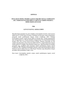 Masalah dalam penelitian ini yaitu rendahnya keterampilan menulis cerpen peserta didik kelas IV di SD Negeri Taraman. Penelitian ini bertujuan untuk menganalisis pengaruh model pembelajaran Inquiry Social Complexity (ISC) terhadap keterampilan menulis cerpen peserta didik di sekolah dasar. Teknik pengumpulan data menggunakan tes. Desain penelitian menggunakan Pre-Experimental Design dengan jenis One Group Pretest-Posttest Design. Populasi berjumlah 40 dan sampel yang digunakan yaitu 20 peserta didik kelas IVA, sampel ditentukan dengan teknik purposive sampling. Data dianalisis dengan uji-t. Hasil penelitian ini terdapat pengaruh yang signifikan pada penerapan model pembelajaran Inquiry Social Complexity (ISC) terhadap keterampilan menulis cerpen pada pembelajaran bahasa Indonesia peserta didik kelas IV di SD Negeri Taraman yang ditunjukkan dengan perolehan nilai probabilitas 0,000 < 0,05. Kata kunci: keterampilan menulis cerpen, model pembelajaran inquiry social complexity (ISC) The problem in this research is the low short story writing skills of fourth-grade students at SD Negeri Taraman. This study aims to analyze the effect of the Inquiry Social Complexity (ISC) learning model on the short story writing skills of elementary school students. Data collection techniques used tests. The research design used a Pre-Experimental Design with the One Group Pretest-Posttest Design type. The population consisted of 40 students, and the sample used was 20 fourth- grade students from class IVA, determined by purposive sampling technique. Data were analyzed using the t-test. The results of this study indicate a significant effect of the application of the Inquiry Social Complexity (ISC) learning model on the short story writing skills in Indonesian language learning of fourth-grade students at SD Negeri Taraman, as shown by the probability value of 0.000 < 0.05. Key words: short story writing skills, inquiry social complexity (ISC) learning model