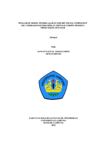 Alwan Naufal Akmaluddin , - (2025) PENGARUH MODEL PEMBELAJARAN INQUIRY SOCIAL COMPLEXITY (ISC) TERHADAP KETERAMPILAN MENULIS CERPEN PESERTA DIDIK SEKOLAH DASAR. FAKULTAS KEGURUAN DAN ILMU PENDIDIKAN, UNIVERSITAS LAMPUNG.