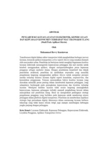 Transformasi digital dalam sektor transportasi telah menghadirkan berbagai inovasi layanan, termasuk aplikasi transportasi online seperti Maxim yang semakin diminati oleh masyarakat urban. Penelitian ini bertujuan untuk mengkaji bagaimana kualitas layanan elektronik memengaruhi kepercayaan pelanggan dan niat mereka untuk kembali menggunakan aplikasi, dengan mempertimbangkan peran kepuasan pengguna sebagai mediator utama. Dengan pendekatan kuantitatif dan teknik pemodelan struktural, penelitian ini melibatkan responden yang memiliki pengalaman langsung menggunakan aplikasi Maxim untuk mengukur persepsi mereka terhadap dimensi layanan digital seperti keandalan, responsivitas, dan kemudahan penggunaan. Temuan menunjukkan bahwa kualitas layanan yang dirasakan memiliki peran penting dalam membentuk kepuasan pelanggan, yang selanjutnya berdampak pada peningkatan kepercayaan dan loyalitas terhadap layanan. Meskipun kualitas layanan tidak secara langsung meningkatkan kepercayaan, kepuasan pelanggan terbukti menjadi penghubung krusial dalam menciptakan niat pembelian ulang. Hasil ini memperkuat pentingnya strategi pengalaman pengguna yang berfokus pada kepuasan untuk mendorong retensi pelanggan dalam platform digital transportasi. Penelitian ini memberikan implikasi strategis bagi perusahaan digital, khususnya dalam merancang layanan berbasis teknologi yang tidak hanya efisien tetapi juga mampu membangun hubungan jangka panjang dengan pelanggan. Kata Kunci: Layanan Elektronik, Kepuasan Pelanggan, Kepercayaan Elektronik, Loyalitas Pengguna, Aplikasi Transportasi Online The digital transformation in the transportation sector has led to a wave of service innovations, including the growing adoption of ride-hailing applications such as Maxim. This study explores how the quality of e-services influences customer trust and their intention to reuse the application, with a particular focus on the mediating role of user satisfaction. Using a quantitative approach and structural modeling techniques, the study engaged respondents with firsthand experience using the Maxim app to assess their perceptions of digital service dimensions such as reliability, responsiveness, and ease of use. The findings reveal that perceived service quality plays a vital role in shaping user satisfaction, which in turn fosters greater trust and loyalty toward the platform. Although service quality alone does not directly lead to increased trust, user satisfaction emerges as a critical bridge that drives repurchase intention. These insights underscore the importance of user experience strategies centered on satisfaction to enhance customer retention in digital service platforms. This research offers strategic implications for digital service providers aiming to develop technology-driven solutions that are not only efficient but also capable of fostering long-term customer relationships. Keywords: E-Service Quality, Customer Satisfaction, e-Trust, User Loyalty, Online Ride-Hailing Applications