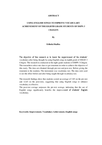 USING ENGLISH SONGS TO IMPROVE VOCABULARY ACHIEVEMENT OF THE EIGHTH GRADE STUDENTS OF SMPN 3 CILEGON