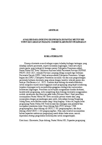 ANALISIS DAYA DUKUNG EKOWISATA DI PANTAI MUTUN MS TOWN KECAMATAN PADANG CERMIN KABUPATEN PESAWARAN