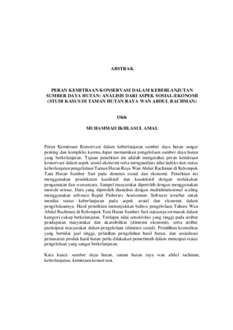 PERAN KEMITRAAN KONSERVASI DALAM KEBERLANJUTAN SUMBER DAYA HUTAN: ANALISIS DARI ASPEK SOSIAL-EKONOMI (STUDI KASUS DI TAMAN HUTAN RAYA WAN ABDUL RACHMAN)