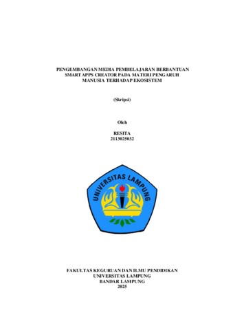 Resita , - (2025) PENGEMBANGAN MEDIA PEMBELAJARAN BERBANTUAN SMART APPS CREATOR PADA MATERI PENGARUH MANUSIA TERHADAP EKOSISTEM. FAKULTAS KEGURUAN DAN ILMU PENDIDIKAN, UNIVERSITAS LAMPUNG.