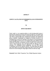 Model kinetika merupakan suatu masalah dalam studi pelindian nikel yang sangat penting karena menentukan prediksi laju reaksi dan efisiensi proses. Permasalahan yang sering muncul adalah ketidaksesuaian antara data eksperimen dengan model kinetika yang digunakan. Hal ini disebabkan oleh noise data, ketidakpastian pengukuran, dan variabilitas kondisi proses. Dengan mempertimbangkan kompleksitas reaksi kimia dalam proses pelindian, serta pentingnya pengaruh parameter reaksi terhadap persen perolehan nikel, maka penelitian ini difokuskan pada analisis kinetika pelindian nikel laterit. Tujuannya adalah untuk mengevaluasi dan menentukan model kinetika terbaik yang dapat menggambarkan proses pelarutan secara akurat, serta mengetahui sejauh mana suhu, waktu, dan reagen mempengaruhi efisiensi ekstraksi nikel. Hubungan antara suhu, waktu dan reagen MSG (C5H8NO4Na), asam (H2SO4), dan basa (NH4OH). Hasil penelitian menunjukkan bahwa model MSG orde 2, model asam dan basa ketika orde 0 merupakan model terbaik untuk menggambarkan laju pelindian nikel menggunakan reagen dalam rentang waktu yang diuji. Kata Kunci: Model Kinetika, Suhu, Waktu, Anlisis Regresi Berganda. Kinetic model is a very important problem in nickel leaching study because it determines the prediction of reaction rate and process efficiency. The problem that often arises is the discrepancy between experimental data and the kinetic model used. This is caused by data noise, measurement uncertainty, and variability of process conditions. Considering the complexity of chemical reactions in the leaching process, as well as the importance of the influence of reaction parameters on the percentage of nickel recovery, this study focuses on the analysis of nickel laterite leaching kinetics. The aim is to evaluate and determine the best kinetic model that can describe the dissolution process accurately, and to determine the extent to which temperature, time, and reagents affect the efficiency of nickel extraction. The relationship between temperature, time and MSG reagents (C5H8NO4Na), acid (H2SO4), and base (NH4OH). The results showed that the 2nd order MSG model, the acid and base models when order 0 are the best models to describe the nickel leaching rate using reagents within the tested time range. Keywords: Kinetic Model, Temperature, Time, Multiple Regression Analysis.