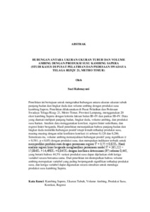 HUBUNGAN ANTARA UKURAN-UKURAN TUBUH DAN VOLUME AMBING DENGAN PRODUKSI SUSU KAMBING SAPERA (STUDI KASUS DI PUSAT PELATIHAN DAN PEDESAAN SWADAYA TELAGA RIZQY 21, METRO TIMUR)
