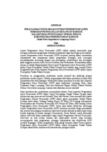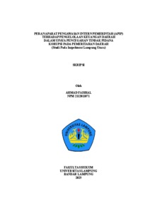 Aparat Pengawasan Intern Pemerintah (APIP) adalah instansi pemerintah yang bertugas melakukan pengawasan terhadap pelaksanaan tugas dan fungsi pemerintahan. Aparat Pengawasan Intern Pemerintah (APIP) berperan penting dalam memastikan akuntabilitas dan transparansi dalam pengelolaan keuangan serta mencegah penyalahgunaan wewenang dengan cara pencegahan, pendeteksian, dan investigasi pada Anggaran melalui Audit, Review, Evaluasi, dan Pemantauan. Permasalahan dalam skripsi ini adalah Bagaimanakah Peran Aparat Pengawasan Intern Pemerintah (APIP) dalam Upaya Pencegahan Tindak Pidana Korupsi serta Apakah yang menjadi Faktor Penghambat dari Peran Aparatur Pengawasan Intern Pemerintah (APIP) dalam Upaya Pencegahan Tindak Pidana Korupsi. Penelitian ini menggunakan pendekatan yuridis normatif dan didukung dengan pendekatan yuridis empiris. Metode pengumpulan data dalam penelitian ini ialah studi kepustakaan dan studi lapangan. Narasumber dalam penelitian ini terdiri dari Aparatur Pengawasan Intern Pemerintah (APIP) pada Inspektorat Lampung Utara, Jaksa Kejaksaan Negeri Lampung Utara dan Akademisi Bagian Hukum Pidana Fakultas Hukum Universitas Lampung. Analisis data dilakukan secara kualitatif. Hasil penelitian dan pembahasan menunjukkan bahwa: Peran Aparatur Pengawasan Intern Pemerintah (APIP) dalam Upaya Pencegahan Tindak Pidana Korupsi dapat ditinjau dari segi peran secara Normatif, Ideal, dan Faktual. Peran normatif dari Aparat Pengawasan Internal Pemerintah (APIP) dalam upaya pencegahan Tindak Pidana Korupsi diatur dalam Undang-Undang Nomor 30 Tahun 2014 tentang Administrasi Pemerintahan dan Peraturan Pemerintah (PP) Nomor 60 Tahun 2008 tentang Sistem Pengendalian Intern Pemerintah (SPIP). Peran ideal dalam efektivitas wewenang Aparat Pengawasan Intern Pemerintah (APIP) harusnya memiliki fungsi penindakan dan struktur kelembagaan hendaknya tidak boleh berada dibawah kendali bupati tetapi berada langsung di bawah naungan Kementerian. Peran faktual, masih ditemukan adanya intervensi dalam pelaksanaan tugas Aparat Pengawasan Internal Pemerintah. Intervensi ini bisa berupa tekanan dari pihak-pihak tertentu yang berusaha mempengaruhi hasil pengawasan, sehingga independensi dan objektivitas APIP menjadi terganggu. Faktor penghambat yang paling dominan dalam Peran Aparatur Pengawasan Intern Pemerintah (APIP) dalam Upaya Pencegahan Tindak Pidana Korupsi adalah faktor kualitas serta kuantitas dari penegak hukum. Ahmad Faishal Adapun saran yang dapat diberikan dalam penelitian ini, hendaknya Negara memberikan kewenangan kepada Aparat Pengawasan Intern Pemerintah (APIP) untuk menjalankan fungsi penindakan. Diharapkan struktur kelembagaan Aparat Pengawasan Internal Pemerintah (APIP) juga sebaiknya ditempatkan di bawah kementerian atau lembaga pusat, bukan di bawah bupati atau kepala daerah, agar independensi, profesionalisme, dan efektivitas pengawasan dapat terjaga tanpa adanya intervensi dari pihak manapun. Aparat Pengawasan Internal Pemerintah (APIP) diharapkan dapat membangun kolaborasi yang erat dengan lembaga penegak hukum dan stakeholder terkait untuk mempercepat proses investigasi serta menyelaraskan hasil pengawasan demi memperkuat akuntabilitas pengelolaan keuangan daerah. Kata Kunci: Peran, APIP, Pencegahan, Korupsi. The Government Internal Supervisory Apparatus (APIP) is a government agency tasked with supervising the implementation of government duties and functions. The Government Internal Supervisory Apparatus (APIP) plays an important role in ensuring accountability and transparency in financial management and preventing abuse of authority by means of prevention, detection, and investigation of the Budget through Audit, Review, Evaluation, and Monitoring. The problem in this thesis is How is the Role of the Government Internal Supervisory Apparatus (APIP) in Efforts to Prevent Criminal Acts of Corruption and What are the Inhibiting Factors of the Role of the Government Internal Supervisory Apparatus (APIP) in Efforts to Prevent Criminal Acts of Corruption. This study uses a normative legal approach and is supported by an empirical legal approach. The data collection methods in this study are literature studies and field studies. The sources in this study consisted of the Government Internal Supervisory Apparatus (APIP) at the North Lampung Inspectorate, the North Lampung District Attorney's Office and Academics from the Criminal Law Section of the Faculty of Law, University of Lampung. Data analysis was carried out qualitatively. The results of the study and discussion show that: The role of the Government Internal Supervisory Apparatus (APIP) in efforts to prevent corruption can be reviewed in terms of normative, ideal, and factual roles. The normative role of the Government Internal Supervisory Apparatus (APIP) in efforts to prevent corruption is regulated in Law Number 30 of 2014 concerning Government Administration and Government Regulation (PP) Number 60 of 2008 concerning the Government Internal Control System (SPIP). The ideal role in the effectiveness of the authority of the Government Internal Supervisory Apparatus (APIP) should have an enforcement function and the institutional structure should not be under the control of the regent but directly under the auspices of the Ministry. In factual roles, intervention is still found in the implementation of the duties of the Government Internal Supervisory Apparatus. This intervention can be in the form of pressure from certain parties who try to influence the results of supervision, so that the independence and objectivity of the APIP are disrupted. The most dominant inhibiting factor in the Role of the Government Internal Supervisory Apparatus (APIP) in Efforts to Prevent Corruption is the quality and quantity of law enforcement. Ahmad Faishal The suggestions that can be given in this study are that the State should give authority to the Government Internal Supervisory Apparatus (APIP) to carry out the enforcement function. It is expe