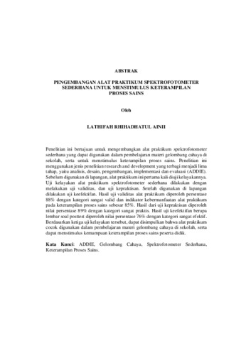Lathifah , Rhihadhatul Ainii (2025) PENGEMBANGAN ALAT PRAKTIKUM SPEKTROFOTOMETER SEDERHANA UNTUK MENSTIMULUS KETERAMPILAN PROSES SAINS. FAKULTAS KEGURUAN DAN ILMU PENDIDIKAN, UNIVERISTAS LAMPUNG.