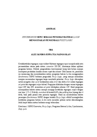 SANDRO , ALEX JUPPA TUA NAINGGOLAN (2025) SYNCHRONOUS SEPIC SEBAGAI PENGISIAN BATERAI LI-ION MENGGUNAKAN PENGENDALI FUZZY LOGIC. FAKULTAS TEKNIK, UNIVERSITAS LAMPUNG.