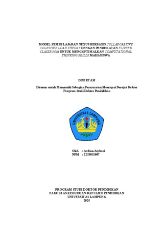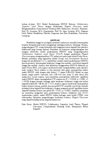 Ardian , Asyhari (2025) MODEL PEMBELAJARAN NEXUS BERBASIS COLLABORATIVE COGNITIVE LOAD THEORY DENGAN PENDEKATAN FLIPPED CLASSROOM UNTUK MENGOPTIMALKAN COMPUTATIONAL THINKING SKILLS MAHASISWA. [Disertasi]