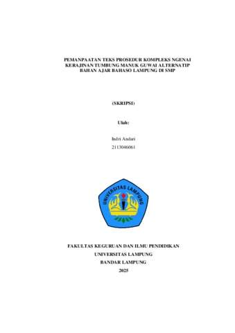 INDRI , ANDARI (2025) PEMANFAATAN TEKS PROSEDUR KOMPLEKS TENTANG KERAJINAN TUMBUNG MANUK SEBAGAI ALTERNATIF BAHAN AJAR BAHASA LAMPUNG DI SMP. FAKULTAS KEGURUAN DAN ILMU PENDIDIKAN, UNIVERSITAS LAMPUNG.
