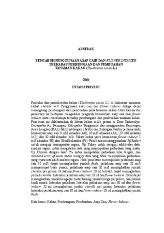 INTAN , APRIYANI (2025) PENGARUH PENGGUNAAN ASAP CAIR DAN FLOWER INDUCER TERHADAP PEMBUNGAAN DAN PEMBUAHAN TANAMAN KAKAO (Theobroma cacao L.). FAKULTAS PERTANIAN, UNIVERSITAS LAMPUNG.